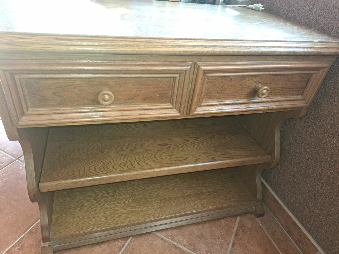 Szafka dębowa. W dobrym stanie. Nie zniszczona. Dwie małe szuflady. Jeden blat okręcany do telewizora. Dwie półki. W tym jedna jest wyciągana. Odbiór tylko osobiście.Sprawdź zainteresowanie tym ogłoszeniem